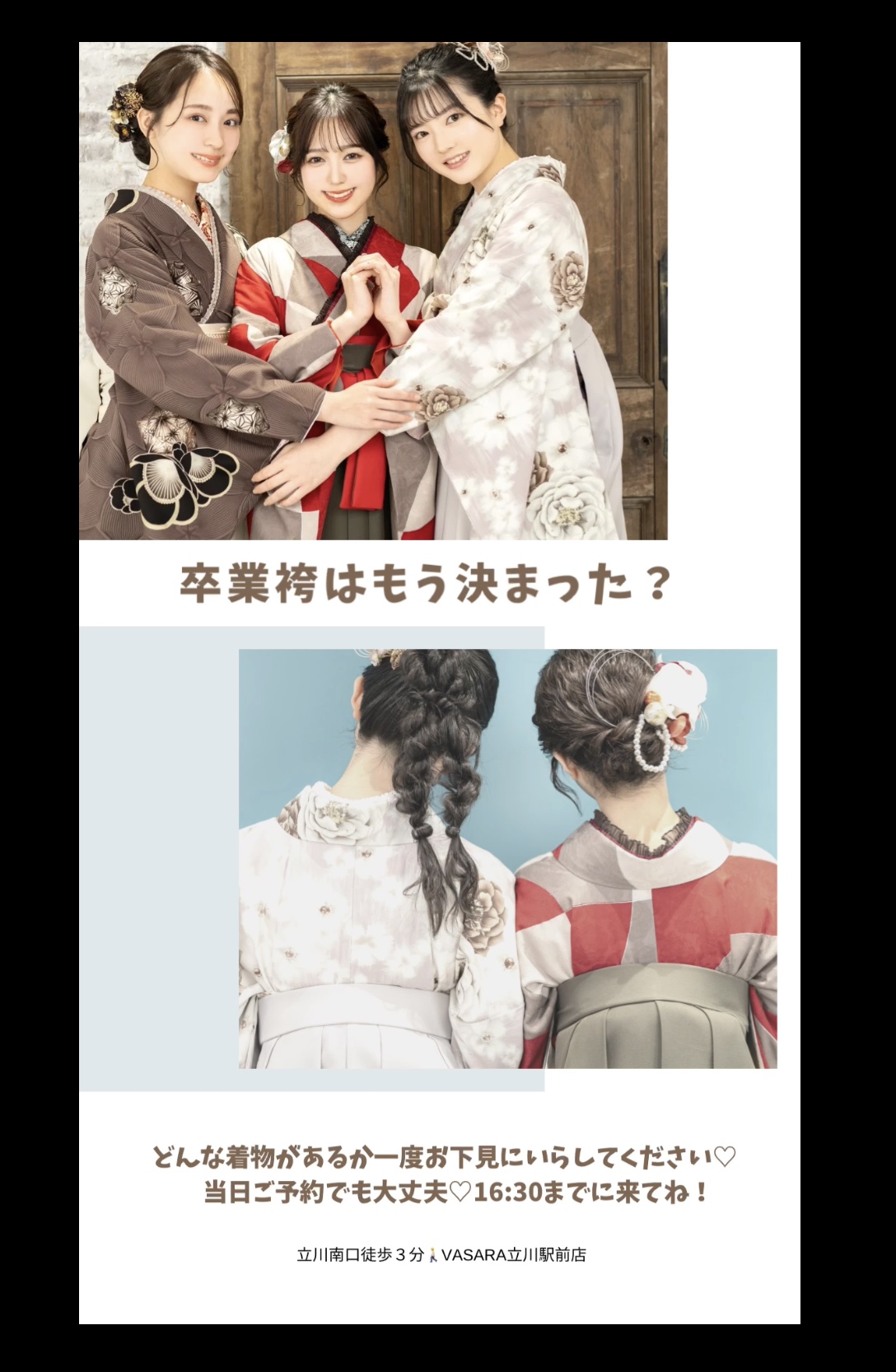位于从立川站南口徒步3分钟的地方的和服租赁店。因为离车站很近,去往各个方向的交通非常便利。