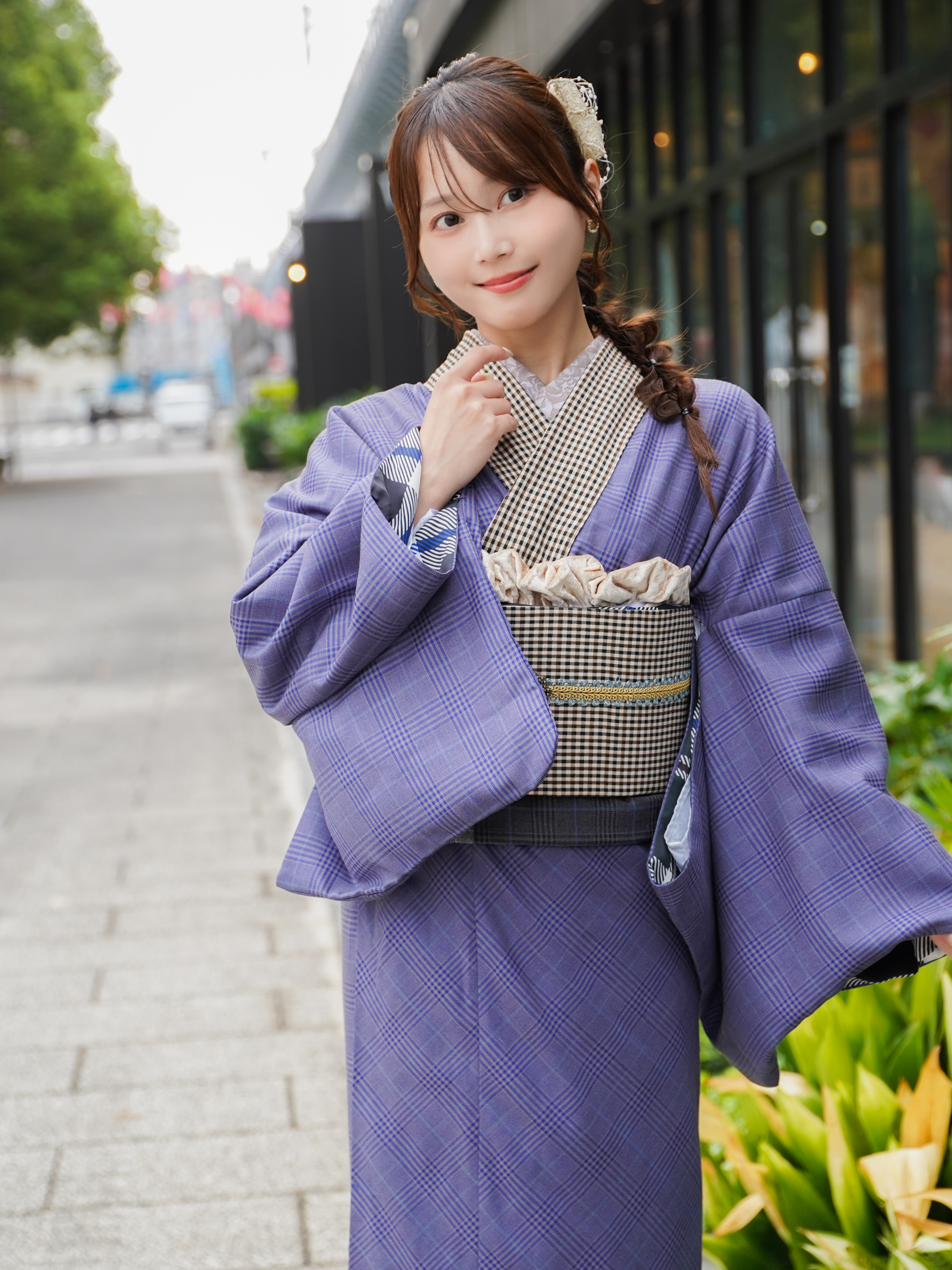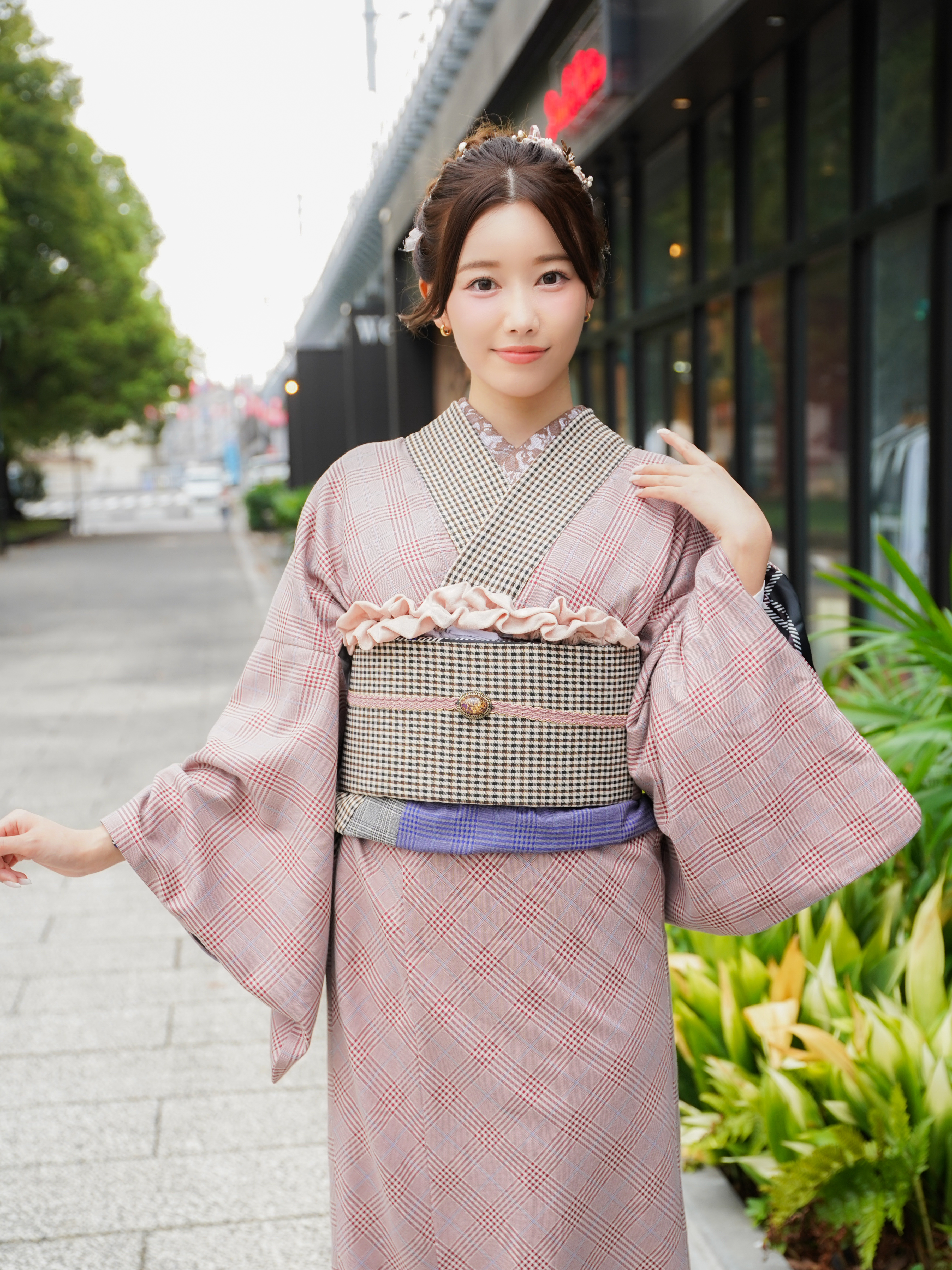 新作チェック着物♩襟元、足元もっと可愛くこだわりたい‼︎