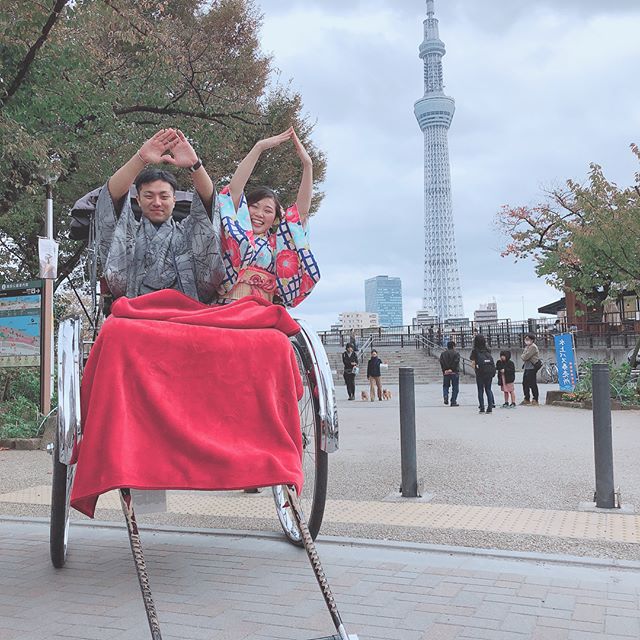着物での散策って膝が大きく曲げられなかったり、着慣れていないと結構大変なんです。そこで浅草に来たらぜひ人力車での着物観光がオススメです。