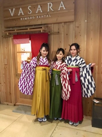 着物レンタルVASARA浅草・鎌倉・京都・金沢・大阪・倉敷・伊勢・博多店では袴のご予約を承っております。卒業式の日はご予約が集中する場合がございますのでお早めにご連絡下さい。着付けとヘアセットで約1時間かかる為ご予約のお時間にもお気を付けください。早朝予約も可能ですのでご予約の際ご相談ください。