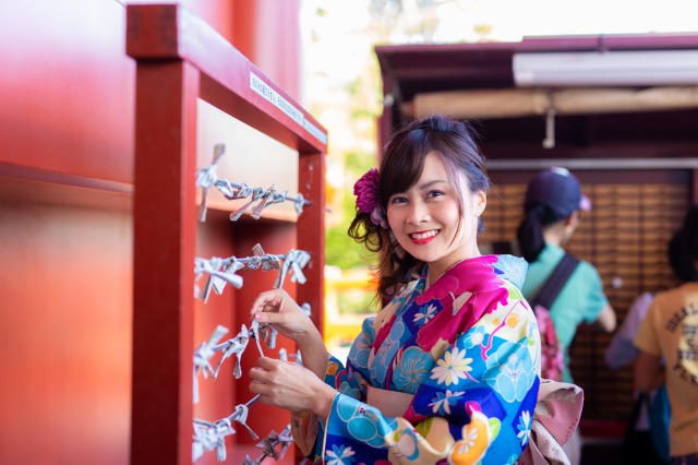 浅草寺についたらこれからも仲良くいられるようにお参りして、おみくじを引きましょう。他の寺院では凶の確立1割ほどなんですが、浅草寺のおみくじは凶が3割もの確率で入っているんです。念のため補足しておくと、お寺にある凶は基本的に「これ以上悪くなることはない」という意味であるので、運が悪いというわけではないんです。運試しとして二人で引いて、逆に二人とも凶を狙うというのも楽しいかもしれませんね。